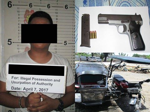While security guard Mar Albert Tamayo, 25, of Barangay Guiang, Rosales, Pangasinan, was apprehended for possessing an undocumented high powered pistol at Barangay Singat.