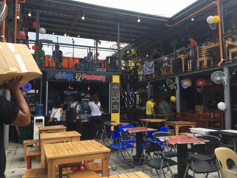The food park has a covered dining area surrounded by the merchants, its a chic-industrial type of backyard dining with wooded tables an comfortable chairs. There are washrooms on both ends and an upper floor dining as well.