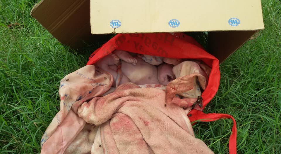 Netizen Kimberly Ann Reyes posted a photos of a fetus inside a box. She was discovered the fetus while they were scrounging for scraps in a garbage dump along Mawaque road Mabalacat, Pampanga.