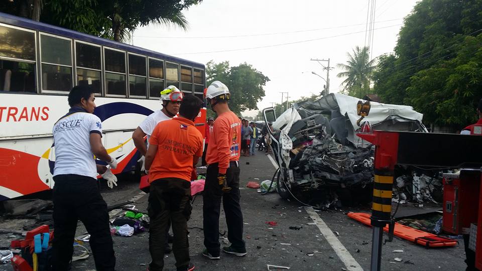 Fourteen people were injured and four people dead as of now Sunday (July 23, 2017) after a passenger bus crashed into UV Express along Mc Arthur Highway in Brgy. Aguso Tarlac City.