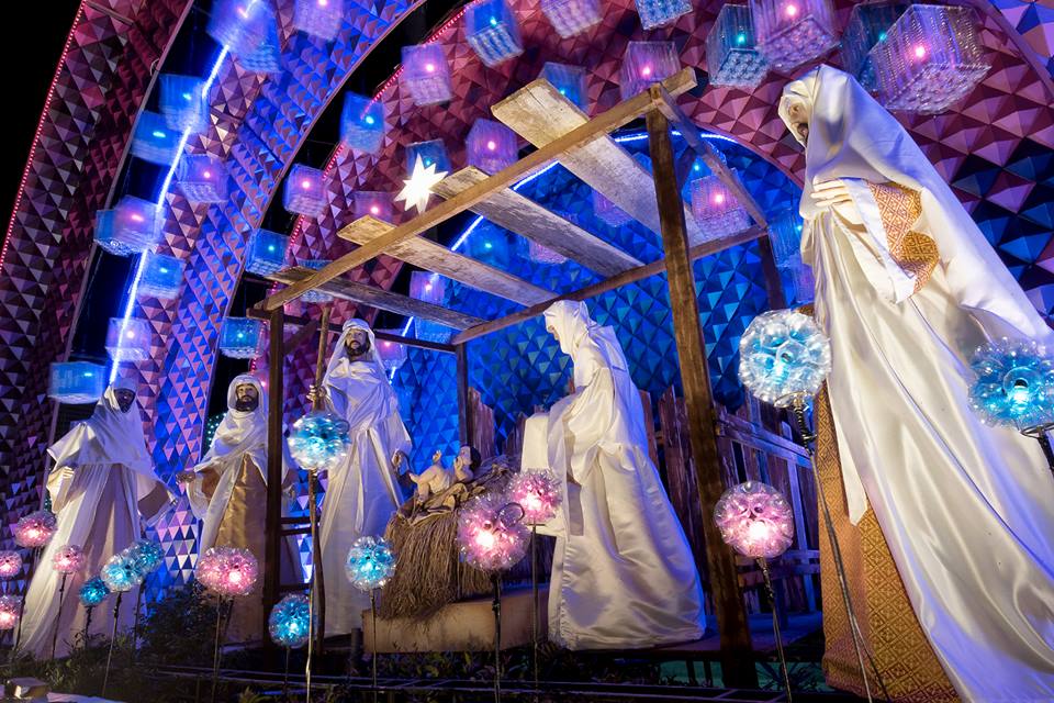 The centerpiece features recycled SM plastic bottled water and repurposed sintra cut outs and focuses on the Holy Family brought to life by robotics.